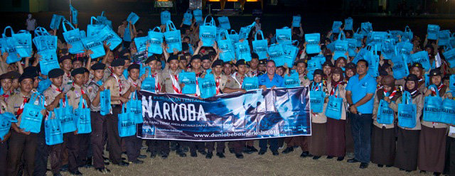 Com o sucesso do treinamento dos professores e da distribuição em Yogyakarta e com os materiais traduzidos em mãos, a equipe do Mundo sem Drogas levou o programa ao resto do país. Eles se reuniram com o Líder Nacional de Treinamento e Educação e fizeram uma parceria com a Associação Nacional de Escoteiros (Gerakan Pramuka), um pilar da cultura indonésia, com 20 milhões de escoteiros e está presente em todas as escolas indonésias — e são mais da metade de todos os escoteiros em todo o mundo.