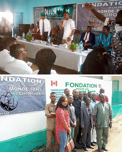 Precisando primeiro despertar o governo para a questão, ele se reuniu com o Ministro de Estado no Escritório do Presidente para propor parceria. Ele então se encontrou com o Secretário do Ministro da Presidência encarregado dos Serviços Especiais para o Combate às Drogas e ao Crime Organizado. Os materiais do Mundo sem Drogas caíram como uma luva, e Sylla foi solicitado a apresentar o plano de ação da Fundação para que o Departamento pudesse apoiá-lo. Assim, ele criou seu próprio escritório com a frase “Fondation pour un Monde Sans Drogue – Guinée”, orgulhosamente pintada na parede. Ele reuniu uma dedicada equipe de professores, advogados, médicos e empresários. Eles então começaram a distribuição, inclusive na Escola Marroquina Rei Hassan, onde os alunos aprenderam a importância de levar uma vida livre de drogas. Eles também chegam às ruas distribuindo livretos para a população em geral e continuarão determinados em sua missão de tornar a Guiné sem drogas e segura.