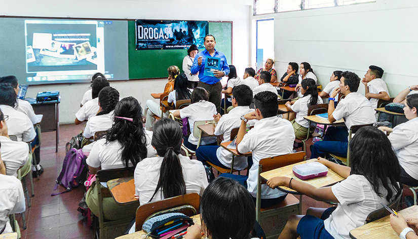 As Drogas e o álcool são o núcleo de os problemas do país”, o Coronel Hugo Aristides Angulo En-rogel diz de El Salvador. Ele está a referir a um nível de violência fora sem paralelo em zonas de guerra - 103 homicídios por 000 residentes de 2015. Tanto da violência de gangs e tráfico de drogas relacionadas.